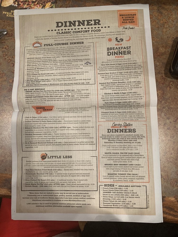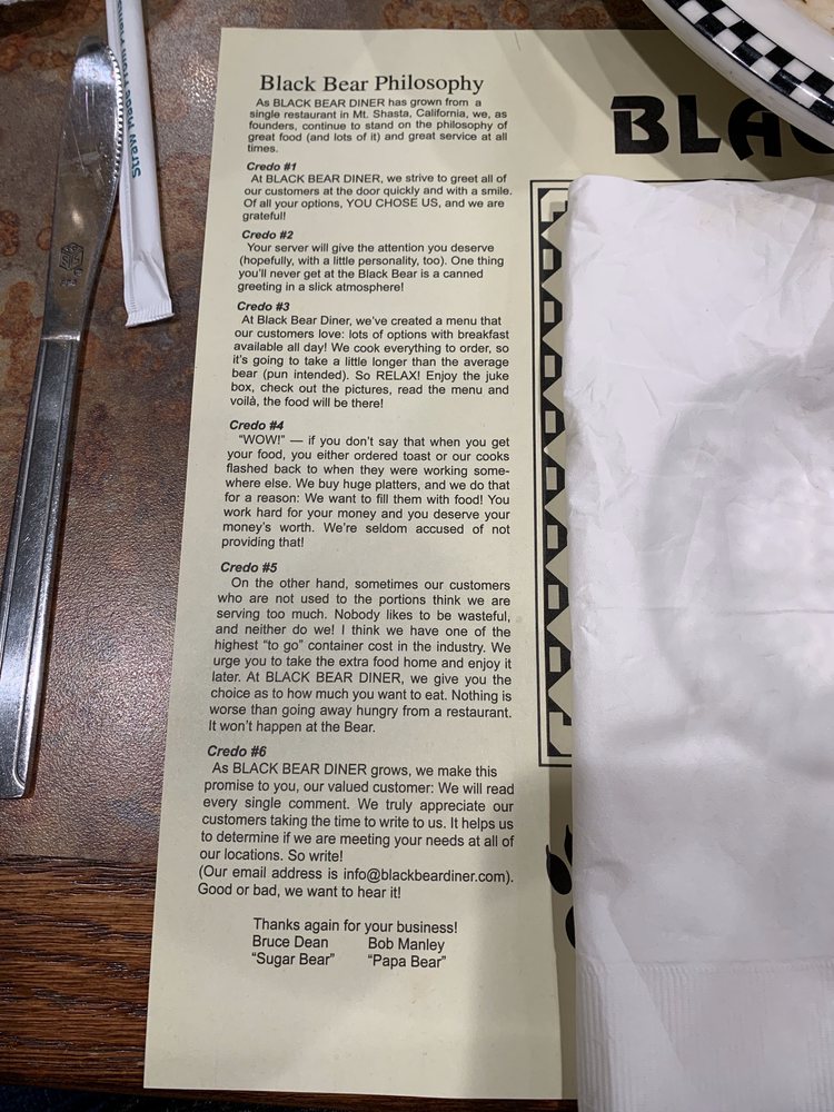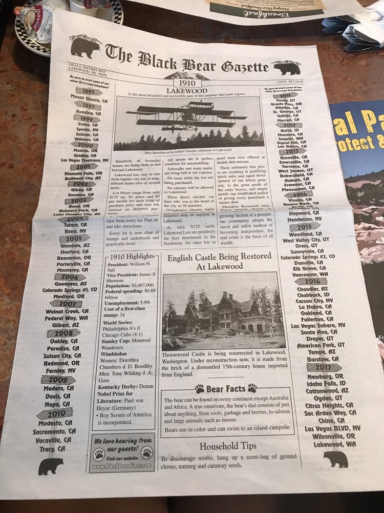 Black Bear Diner in Lakewood offers a wide range of American diner breakfast and brunch options with a cozy casual atmosphere. The menu includes popular dishes like BIGFOOT Chicken Fried Steak & Eggs and New York Steak & Eggs, satisfying even the heartiest appetites. Their Build Your Own Bear's Choice option allows customization with choices like smoked bacon, sausage, ham, and even stuffed blackberry French toast. The restaurant offers many vegetarian options and caters to various dietary needs, making it a great choice for groups and families. The location provides outdoor seating, drive-thru, and even allows dogs, adding to the welcoming atmosphere. With efficient service and delicious food, Black Bear Diner is a must-visit spot for a hearty and satisfying meal in Lakewood.